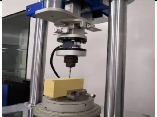 標(biāo)準(zhǔn)ASTM F543-07 Test A4:“自攻醫(yī)用骨釘自攻性能測(cè)試方法”規(guī)定了評(píng)價(jià)一個(gè)自攻骨釘鉆入標(biāo)準(zhǔn)實(shí)驗(yàn)材料所需軸向力的方法。雖然在臨床上被認(rèn)為是一個(gè)簡(jiǎn)單的過(guò)程,但是由于試驗(yàn)機(jī)回轉(zhuǎn)軸和線性軸的相互影響,在體外重現(xiàn)這個(gè)過(guò)程是一個(gè)相對(duì)復(fù)雜的運(yùn)動(dòng)。該測(cè)試要求連續(xù)的高達(dá)30rpm旋轉(zhuǎn)速度,在鉆入同時(shí)軸向載荷以2N/s的加載速率逐漸增加。本試驗(yàn)的目的是為了記錄骨螺釘鉆入和去除材料時(shí)的扭矩曲線