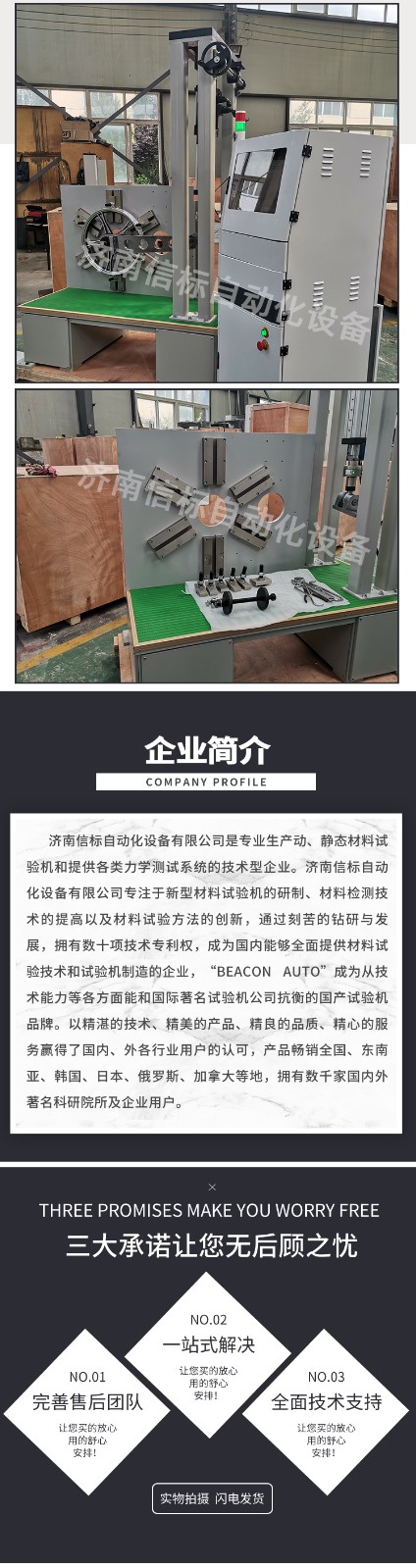 濟(jì)南信標(biāo)自動(dòng)化設(shè)備有限公司主要生產(chǎn):動(dòng)靜態(tài)萬(wàn)能疲勞試驗(yàn)機(jī),接骨板彎曲試驗(yàn)機(jī),縫合線拉伸疲勞試驗(yàn)機(jī),髖膝關(guān)節(jié)磨損試驗(yàn)機(jī),電子萬(wàn)能試驗(yàn)機(jī)、液壓萬(wàn)能試驗(yàn)機(jī)、巖石三軸、四軸,電液拉力試驗(yàn)機(jī),材料試驗(yàn)機(jī),高低溫蠕變,高低頻疲勞,拉伸、扭轉(zhuǎn)、杯突等二十多個(gè)系列兩千多個(gè)的品種。