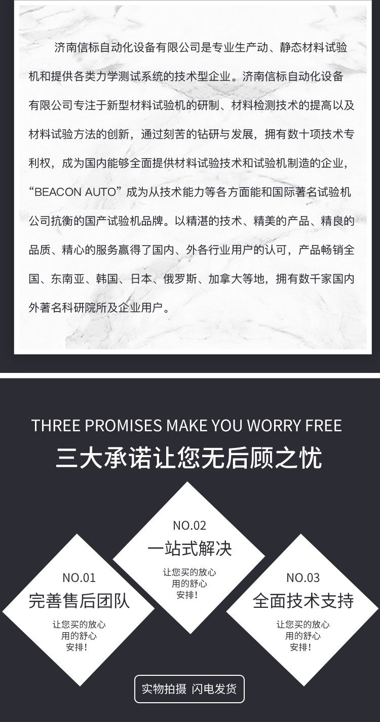 濟(jì)南信標(biāo)自動(dòng)化設(shè)備有限公司主要生產(chǎn):動(dòng)靜態(tài)萬(wàn)能疲勞試驗(yàn)機(jī),接骨板彎曲試驗(yàn)機(jī),縫合線拉伸疲勞試驗(yàn)機(jī),髖膝關(guān)節(jié)磨損試驗(yàn)機(jī),電子萬(wàn)能試驗(yàn)機(jī)、液壓萬(wàn)能試驗(yàn)機(jī)、巖石三軸、四軸,電液拉力試驗(yàn)機(jī),材料試驗(yàn)機(jī),高低溫蠕變,高低頻疲勞,拉伸、扭轉(zhuǎn)、杯突等二十多個(gè)系列兩千多個(gè)的品種。
