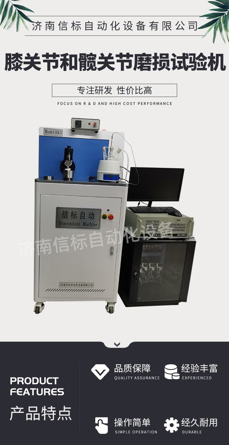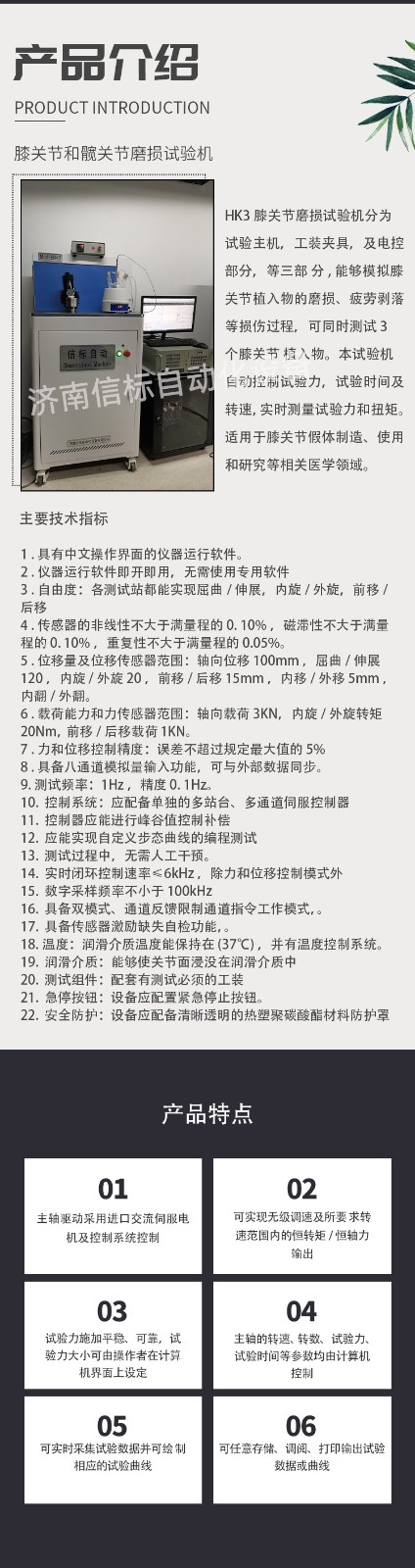 濟南信標自動化設備有限公司主要生產(chǎn):動靜態(tài)萬能疲勞試驗機,接骨板彎曲試驗機,縫合線拉伸疲勞試驗機,髖膝關(guān)節(jié)磨損試驗機,電子萬能試驗機、液壓萬能試驗機、巖石三軸、四軸,電液拉力試驗機,材料試驗機,高低溫蠕變,高低頻疲勞,拉伸、扭轉(zhuǎn)、杯突等二十多個系列兩千多個的品種。