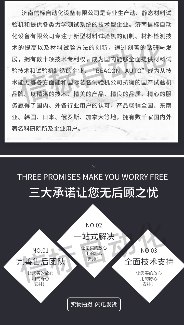 濟(jì)南信標(biāo)自動化設(shè)備有限公司主要生產(chǎn):動靜態(tài)萬能疲勞試驗(yàn)機(jī),接骨板彎曲試驗(yàn)機(jī),縫合線拉伸疲勞試驗(yàn)機(jī),髖膝關(guān)節(jié)磨損試驗(yàn)機(jī),電子萬能試驗(yàn)機(jī)、液壓萬能試驗(yàn)機(jī)、巖石三軸、四軸,電液拉力試驗(yàn)機(jī),材料試驗(yàn)機(jī),高低溫蠕變,高低頻疲勞,拉伸、扭轉(zhuǎn)、杯突等二十多個系列兩千多個的品種。