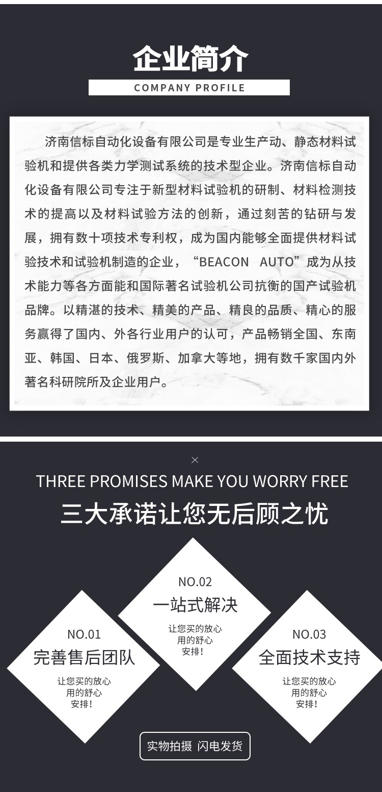 濟南信標自動化設(shè)備有限公司主要生產(chǎn):動靜態(tài)萬能疲勞試驗機,接骨板彎曲試驗機,縫合線拉伸疲勞試驗機,髖膝關(guān)節(jié)磨損試驗機,電子萬能試驗機、液壓萬能試驗機、巖石三軸、四軸,電液拉力試驗機,材料試驗機,高低溫蠕變,高低頻疲勞,拉伸、扭轉(zhuǎn)、杯突等二十多個系列兩千多個的品種。
