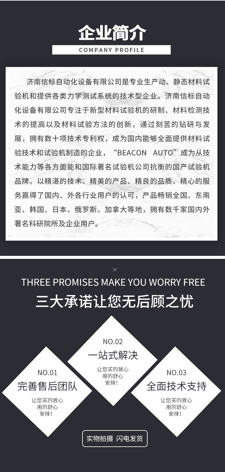 濟(jì)南信標(biāo)自動化設(shè)備有限公司主要生產(chǎn):動靜態(tài)萬能疲勞試驗機(jī),接骨板彎曲試驗機(jī),縫合線拉伸疲勞試驗機(jī),髖膝關(guān)節(jié)磨損試驗機(jī),電子萬能試驗機(jī)、液壓萬能試驗機(jī)、巖石三軸、四軸,電液拉力試驗機(jī),材料試驗機(jī),高低溫蠕變,高低頻疲勞,拉伸、扭轉(zhuǎn)、杯突等二十多個系列兩千多個的品種。