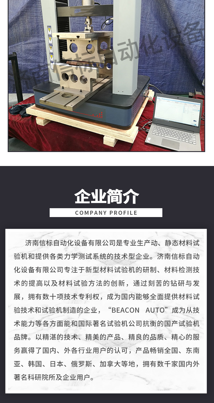 濟南信標(biāo)自動化設(shè)備有限公司主要生產(chǎn):動靜態(tài)萬能疲勞試驗機,接骨板彎曲試驗機,縫合線拉伸疲勞試驗機,髖膝關(guān)節(jié)磨損試驗機,電子萬能試驗機、液壓萬能試驗機、巖石三軸、四軸,電液拉力試驗機,材料試驗機,高低溫蠕變,高低頻疲勞,拉伸、扭轉(zhuǎn)、杯突等二十多個系列兩千多個的品種。