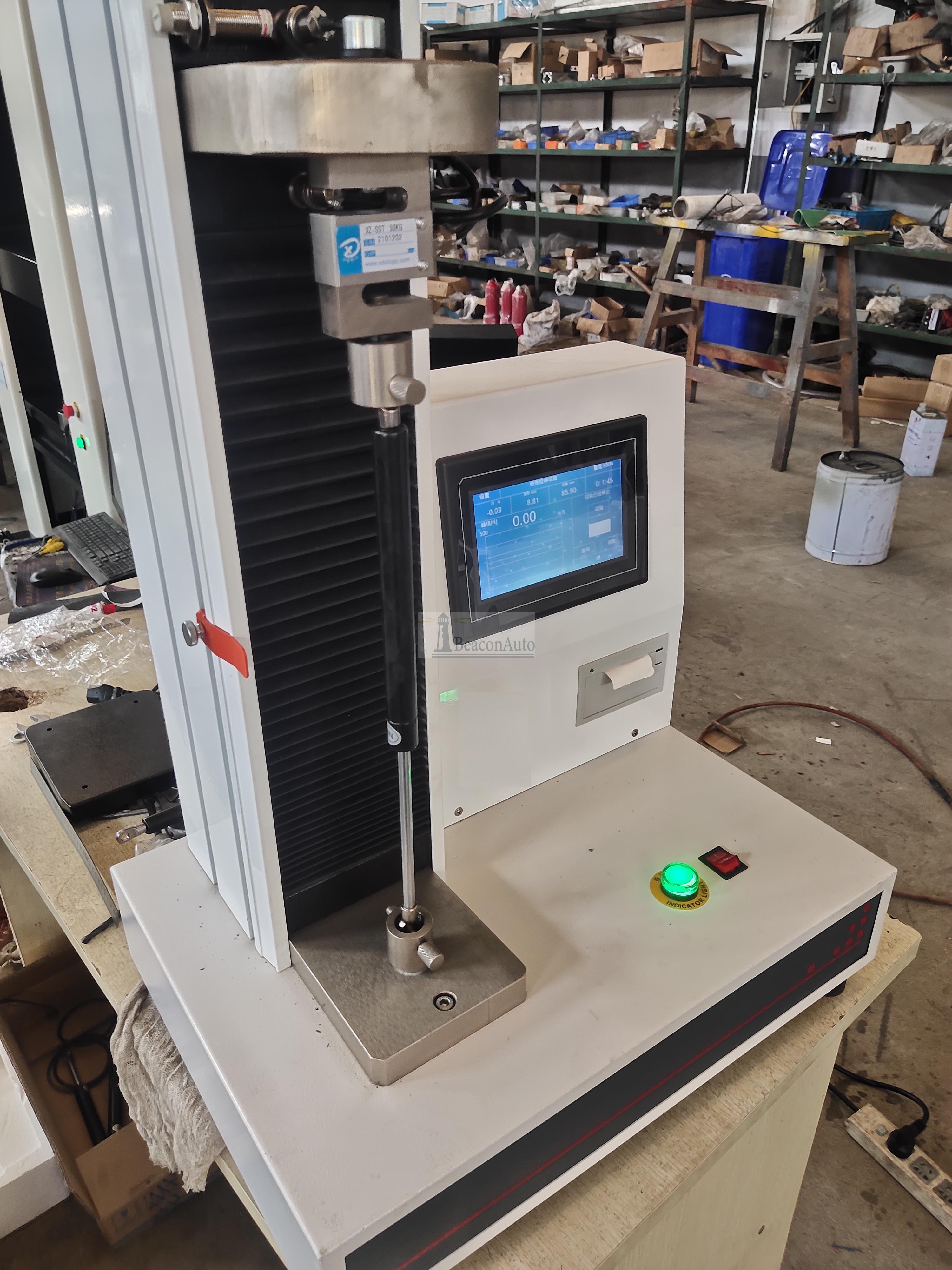 一次性口罩隔拉力試驗(yàn)機(jī) 產(chǎn)品型號(hào):WDL-05 一次性口罩隔拉力試驗(yàn)機(jī)產(chǎn)品用途:一次性口罩隔拉力試驗(yàn)機(jī)廣泛應(yīng)用于醫(yī)用口罩,防護(hù)隔離服,口罩包裝袋,橡膠、塑料、紡織物、防水材料、無紡布等非金屬材料及金屬絲、金屬箔、金屬片的壓拉伸撕裂性能試驗(yàn)。 一次性口罩隔拉力試驗(yàn)機(jī)產(chǎn)品特點(diǎn):1、采用高精度、全數(shù)字調(diào)速系統(tǒng)及精密減速機(jī), 驅(qū)動(dòng)精密絲杠副進(jìn)行試驗(yàn),實(shí)現(xiàn)試驗(yàn)速度的大范圍調(diào)節(jié), 試驗(yàn)過程噪音低、運(yùn)行平穩(wěn)。 2、萬向節(jié)采用十字插銷結(jié)構(gòu),而且具有擺角限制功能, 一方面便于試樣夾持,保證試驗(yàn)同心度, 另一方面很好的消除了不規(guī)則試樣對(duì)傳感器的影響。 3、觸摸鍵操作方式,液晶顯示器實(shí)時(shí)顯示。 顯示界面可顯示試驗(yàn)方法選擇界面、試驗(yàn)參數(shù)選擇界面、試驗(yàn)操作及結(jié)果顯示界面和曲線顯示界面,方便快捷。 4、可實(shí)現(xiàn)試樣裝夾時(shí)橫梁快慢升降調(diào)整,具有過流、過壓、過載等保護(hù)裝置。 5、選配微機(jī)接口,可外接微機(jī)實(shí)現(xiàn)試驗(yàn)過程的控制及數(shù)據(jù)的存儲(chǔ)、打印。