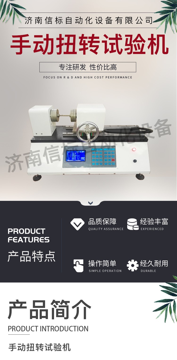 一、介紹 試驗機用扭矩傳感器,三爪卡盤,減速機 旋轉(zhuǎn)編碼器  數(shù)據(jù)采集器 計算機組成,通過手輪旋轉(zhuǎn)帶動減速機的渦輪旋轉(zhuǎn),卡盤和渦輪相連,可以帶動試樣的一端旋轉(zhuǎn),試樣的另一端通過夾頭和傳感器相連,這樣在旋轉(zhuǎn)過程中,試樣所受的扭力就傳遞到扭矩傳感器上面,經(jīng)過采集系統(tǒng),傳輸?shù)接嬎銠C上面,表面器 和渦輪的另一端連接,旋轉(zhuǎn)時會將信號傳給采集器,從而實現(xiàn)在扭轉(zhuǎn)過程中同步采集扭矩和旋轉(zhuǎn)角度。計算機可以實時計算最大扭矩,扭角,彈性模量,屈服扭矩等,并可實時繪制對應(yīng)的曲線。實驗結(jié)束可以根據(jù)需求,打印數(shù)據(jù)報表,整機采用鋁合金型材拼接,外觀精致,底部裝有滾輪,方便移動。試驗機用扭矩傳感器,三爪卡盤,減速機 旋轉(zhuǎn)編碼器  數(shù)據(jù)采集器 計算機組成,通過手輪旋轉(zhuǎn)帶動減速機的渦輪旋轉(zhuǎn),卡盤和渦輪相連,可以帶動試樣的一端旋轉(zhuǎn),試樣的另一端通過夾頭和傳感器相連,這樣在旋轉(zhuǎn)過程中,試樣所受的扭力就傳遞到扭矩傳感器上面,經(jīng)過采集系統(tǒng)。 二、基本參數(shù) 1.最大扭矩:50NM 2.扭矩分辨率:0.01NM 3.角度范圍:0-999999度,(無限制) 4.夾持范圍:3-12mm 5.測試空間:20-150mm 6.外形尺寸:850*320*260 7.重量:45kg 三、配置: 1.計算機:1套 2.采集儀:1套 3.傳感器:1套 4.減速機:1套 5.編碼器:1套 6.隨機工具:1套 7.三爪夾頭:2套