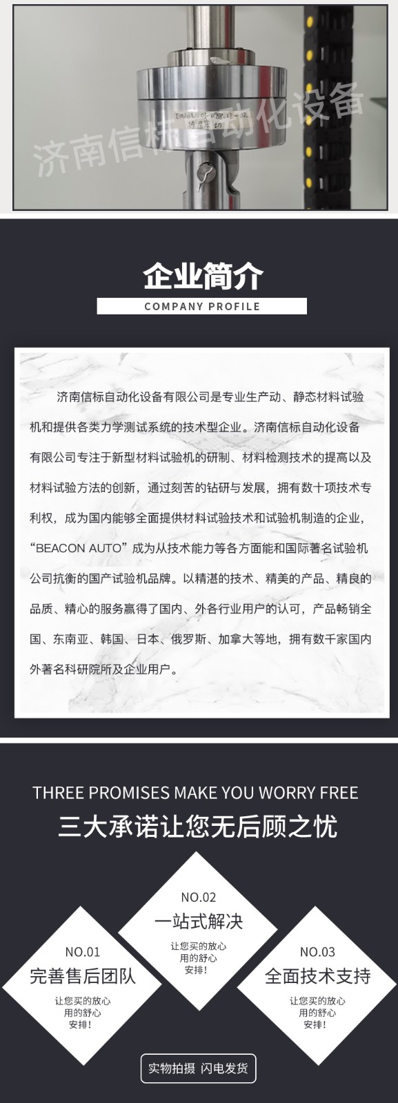 濟(jì)南信標(biāo)自動(dòng)化設(shè)備有限公司主要生產(chǎn):動(dòng)靜態(tài)萬(wàn)能疲勞試驗(yàn)機(jī),接骨板彎曲試驗(yàn)機(jī),縫合線拉伸疲勞試驗(yàn)機(jī),髖膝關(guān)節(jié)磨損試驗(yàn)機(jī),電子萬(wàn)能試驗(yàn)機(jī)、液壓萬(wàn)能試驗(yàn)機(jī)、巖石三軸、四軸,電液拉力試驗(yàn)機(jī),材料試驗(yàn)機(jī),高低溫蠕變,高低頻疲勞,拉伸、扭轉(zhuǎn)、杯突等二十多個(gè)系列兩千多個(gè)的品種。