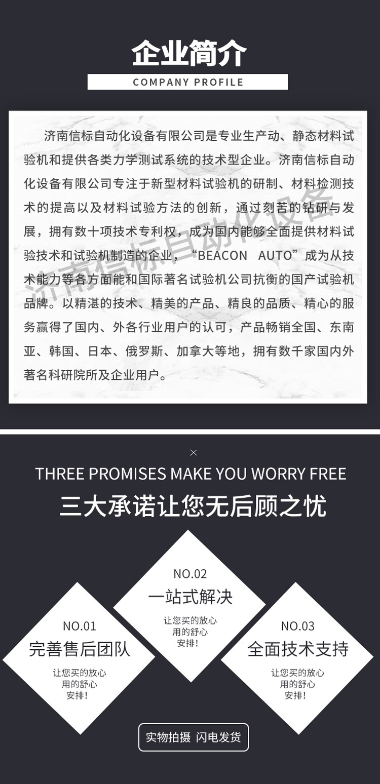 濟(jì)南信標(biāo)自動化設(shè)備有限公司主要生產(chǎn):動靜態(tài)萬能疲勞試驗機,接骨板彎曲試驗機,縫合線拉伸疲勞試驗機,髖膝關(guān)節(jié)磨損試驗機,電子萬能試驗機、液壓萬能試驗機、巖石三軸、四軸,電液拉力試驗機,材料試驗機,高低溫蠕變,高低頻疲勞,拉伸、扭轉(zhuǎn)、杯突等二十多個系列兩千多個的品種。