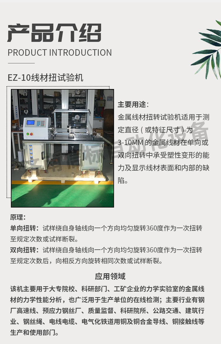 金屬線材扭轉試驗機適用于測定直徑(或特征尺寸)為3-10mm 的金屬線材在單向或雙向扭轉中承受塑性變形的能力及顯示線材表面和內部的缺陷。 二、原理: 單向扭轉:試樣繞自身軸線向一個方向均勻旋轉360度作為一次扭轉至規(guī)定次數(shù)或試樣斷裂。 雙向扭轉:試樣繞自身軸線向一個方向均勻旋轉360度作為一次扭轉至規(guī)定次數(shù)后,向相反方向旋轉相同次數(shù)或試樣斷裂。 金屬線材扭轉試驗機適用標準: 金屬線材扭轉試驗機適用于中華人民共和國標準GB/T 239.1-2012《金屬材料 線材 第一部分 單向扭轉試驗方法》、GB/T 239.2-2012《金屬材料 線材 第二部分 雙向扭轉試驗方法》,也適用于國際標準ISO 7800:2003《金屬線材單向扭轉試驗方法》和ISO 9649:1990《金屬線材雙向扭轉試驗方法》。 金屬線材扭轉試驗機應用領域: 該機主要用于大專院校、科研部門、工礦企業(yè)的力學實驗室的金屬線材的力學性能分析,也廣泛用于生產(chǎn)單位的在線檢測;主要行業(yè)有鋼廠高速線、預應力鋼絲廠、質量監(jiān)督、科研院所、公路交通、建筑行業(yè)、鋼絲繩、電線電纜、電氣化鐵道用銅及銅合金導線、銅接觸線等生產(chǎn)和使用部門。更多金屬線材扭轉試驗機資料請聯(lián)系我們濟南信標自動化設備有限公司。專業(yè)生產(chǎn)液壓萬能試驗機,疲勞試驗機,扭轉試驗機,高溫蠕變試驗機,彈簧試驗機,彎曲試驗機,沖擊試驗機,彎曲強度試驗機,抗拉強度試驗機等。