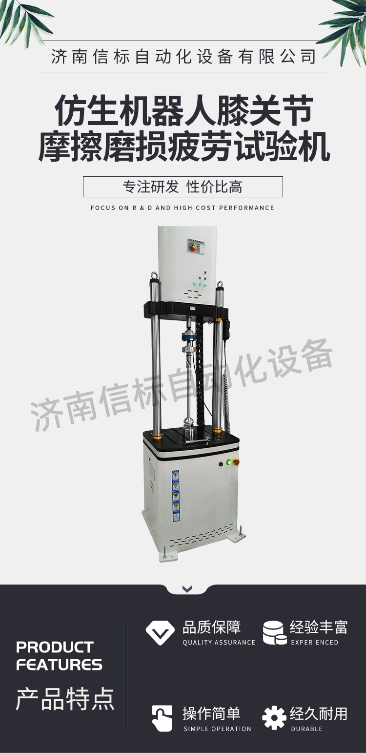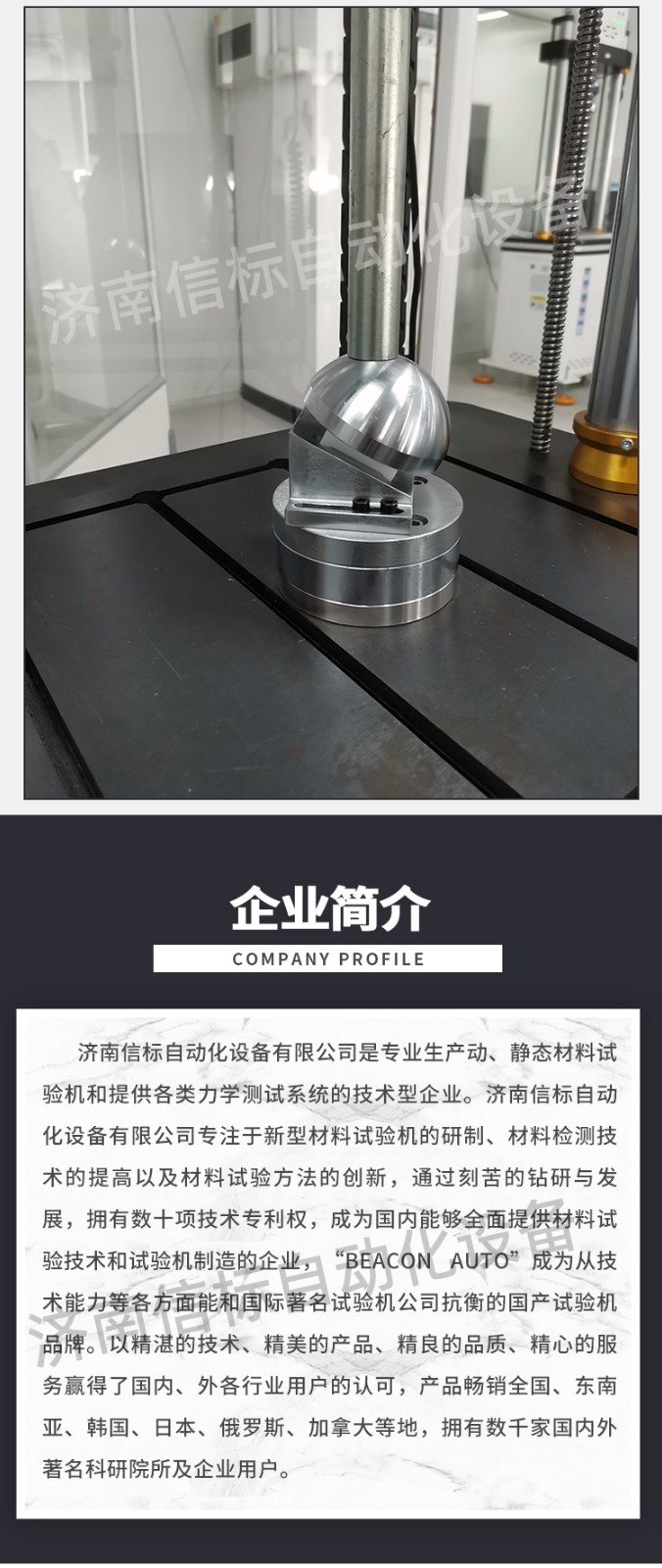 濟(jì)南信標(biāo)自動化設(shè)備有限公司主要生產(chǎn):動靜態(tài)萬能疲勞試驗機(jī),接骨板彎曲試驗機(jī),縫合線拉伸疲勞試驗機(jī),髖膝關(guān)節(jié)磨損試驗機(jī),電子萬能試驗機(jī)、液壓萬能試驗機(jī)、巖石三軸、四軸,電液拉力試驗機(jī),材料試驗機(jī),高低溫蠕變,高低頻疲勞,拉伸、扭轉(zhuǎn)、杯突等二十多個系列兩千多個的品種。