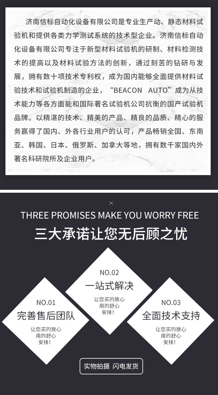 濟(jì)南信標(biāo)自動(dòng)化設(shè)備有限公司主要生產(chǎn):動(dòng)靜態(tài)萬(wàn)能疲勞試驗(yàn)機(jī),接骨板彎曲試驗(yàn)機(jī),縫合線拉伸疲勞試驗(yàn)機(jī),髖膝關(guān)節(jié)磨損試驗(yàn)機(jī),電子萬(wàn)能試驗(yàn)機(jī)、液壓萬(wàn)能試驗(yàn)機(jī)、巖石三軸、四軸,電液拉力試驗(yàn)機(jī),材料試驗(yàn)機(jī),高低溫蠕變,高低頻疲勞,拉伸、扭轉(zhuǎn)、杯突等二十多個(gè)系列兩千多個(gè)的品種。