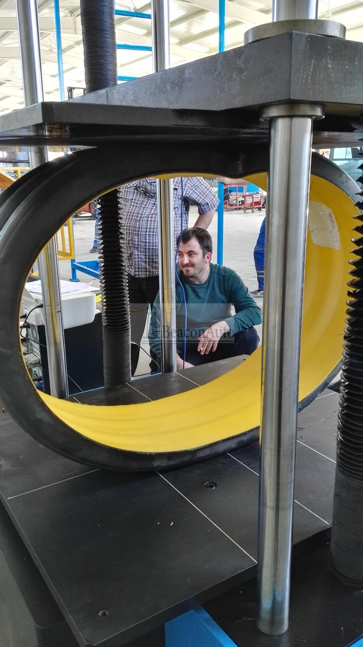 WDW-100E微機(jī)控制環(huán)剛度試驗(yàn)機(jī) WDW-100E型微機(jī)控制環(huán)剛度試驗(yàn)機(jī)產(chǎn)品型號(hào):WDW-100E  WDW-100E型微機(jī)控制環(huán)剛度試驗(yàn)機(jī)產(chǎn)品簡介: WDW-100E型微機(jī)控制環(huán)剛度試驗(yàn)機(jī)主機(jī)與輔具的設(shè)計(jì)融匯了我公司的先進(jìn)技術(shù),外形美觀,操作方便,性能穩(wěn)定可靠。系統(tǒng)通過專用控制器,經(jīng)調(diào)速系統(tǒng)控制交流伺服電機(jī)轉(zhuǎn)動(dòng),經(jīng)減速系統(tǒng)減速后通過進(jìn)口精密滾珠絲杠副帶動(dòng)橫梁上升、下降,完成試樣的拉伸、壓縮等力學(xué)性能試驗(yàn),無污染、噪音低,效率高,具有較寬的調(diào)速范圍。完全符合GB21238-2007《玻璃纖維增強(qiáng)塑料加砂管》、GB/T9647-2003《熱塑性塑料管材環(huán)剛度的測(cè)定》等標(biāo)準(zhǔn)的要求。該機(jī)廣泛應(yīng)用于鋼鐵冶金、建筑建材、航空航天、機(jī)械制造、電線電纜、橡膠塑料、紡織、家電等行業(yè)的材料檢驗(yàn)分析,是科研院校、大專院校、工礦企業(yè)、技術(shù)監(jiān)督、商檢仲裁等部門的理想測(cè)試設(shè)備。    該機(jī)采用調(diào)速精度高、性能穩(wěn)定的交流伺服調(diào)速系統(tǒng)及伺服電機(jī)作為驅(qū)動(dòng)系統(tǒng),專用控制器作為控制系統(tǒng)核心,以WINDOWS為操作界面的控制與數(shù)據(jù)處理軟件,實(shí)現(xiàn)試驗(yàn)力、試驗(yàn)力峰值、橫梁位移、試驗(yàn)變形及試驗(yàn)曲線的屏幕顯示,所有試驗(yàn)操作均可以通過鼠標(biāo)在計(jì)算機(jī)上自動(dòng)完成。良好的人性化設(shè)計(jì)使試驗(yàn)操作更為簡便。綜合以上各項(xiàng)技術(shù),該機(jī)可以近乎完美的實(shí)現(xiàn)試驗(yàn)力、變形及位移等參數(shù)的閉環(huán)控制,可實(shí)現(xiàn)恒應(yīng)力、恒應(yīng)變、恒位移等控制模式,并且各種控制模式之間可以平滑切換。 WDW-100E型微機(jī)控制環(huán)剛度試驗(yàn)機(jī)主要技術(shù)指標(biāo): 1. 最大試驗(yàn)力:    100kN 2. 有效測(cè)量范圍:  0.4%—100%FS(200N-50kN) 3. 試驗(yàn)力準(zhǔn)確度:  優(yōu)于示值的±1% 4. 橫梁位移測(cè)量:  分辨率為0.0025mm 5. 內(nèi)變形準(zhǔn)確度:    優(yōu)于±1% 6. 調(diào) 速 范 圍:   0.01-300mm/min 7. 壓縮試驗(yàn)空間:  2800mm 8. 壓 盤 尺 寸:  800×1000mm 9. 主 機(jī) 形 式:   落地式結(jié)構(gòu) 10. 重       量:   約2550Kg 11. 工 作 環(huán) 境:   室溫~45℃,濕度20%~80% 12. 設(shè)備外形:1500*1200*3500 13. 工作電壓:220V  2KW WDW-100E型微機(jī)控制環(huán)剛度試驗(yàn)機(jī)主要功能及特點(diǎn): 1. 主機(jī): 1.1該機(jī)采用門式結(jié)構(gòu):下壓; 1.2調(diào)速系統(tǒng)采用交流伺服電機(jī)和調(diào)速器,性能穩(wěn)定可靠,具有過流、過壓、過載等保護(hù)裝置。調(diào)速范圍可達(dá)0.01~300mm/min。 1.3傳動(dòng)部分采用圓弧同步齒形帶,精密絲杠副傳動(dòng),傳動(dòng)平穩(wěn),噪音低,傳動(dòng)效率高。(均為重型結(jié)構(gòu)) 2、控制系統(tǒng)、操作軟件及數(shù)據(jù)處理系統(tǒng) 2.1計(jì)算機(jī)控制系統(tǒng),具有集成度高、性能穩(wěn)定、調(diào)整方便等優(yōu)點(diǎn)??梢詫?duì)實(shí)驗(yàn)數(shù)據(jù)進(jìn)行實(shí)時(shí)采集,對(duì)實(shí)驗(yàn)特性曲線實(shí)現(xiàn)實(shí)時(shí)動(dòng)態(tài)顯示,試驗(yàn)數(shù)據(jù)文件能以Access常用數(shù)據(jù)庫的方式保存,方便實(shí)現(xiàn)客戶的資源共享及網(wǎng)絡(luò)管理,以及用戶的再分析。對(duì)于用戶自定義的各種word2000報(bào)表,該軟件可輕松實(shí)現(xiàn)訪問,解決了不同用戶或同一用戶在不同時(shí)期對(duì)試驗(yàn)報(bào)表有不同需要的難題。該軟件可處理試驗(yàn)力、位移、時(shí)間、變形的原始數(shù)據(jù)及由此派生的曲線。 2.2保護(hù)功能:該機(jī)具有軟件和機(jī)械兩種限位保護(hù)方式,超過最大負(fù)荷自動(dòng)停機(jī)的比例可動(dòng)態(tài)設(shè)定;具有過流、過壓、過載等多種保護(hù)功能。 2.3對(duì)于負(fù)荷、變形通道可實(shí)現(xiàn)自動(dòng)標(biāo)示,直觀方便。 2.4批量試驗(yàn)可實(shí)現(xiàn)曲線的分層次顯示,曲線自動(dòng)跟隨。 2.5該軟件可實(shí)現(xiàn)用戶自定義的速度設(shè)定,速度的計(jì)算機(jī)調(diào)整。還可實(shí)現(xiàn)高精度的速度標(biāo)定,隨時(shí)調(diào)整速度檔位和編碼。 2.6監(jiān)測(cè)試驗(yàn)過程:對(duì)試驗(yàn)過程中的試驗(yàn)力、變形、位移、曲線等多種參數(shù)可實(shí)現(xiàn)實(shí)時(shí)顯示。 2.7軟件權(quán)限分級(jí)管理功能:為了提高軟件及數(shù)據(jù)的安全性,該軟件可以通過設(shè)置不同的密碼保護(hù)來實(shí)現(xiàn)分權(quán)限管理功能。 2.8結(jié)果再現(xiàn)功能:試驗(yàn)操作完成并存盤后,可根據(jù)用戶需要在以后任意時(shí)間打開并對(duì)試驗(yàn)數(shù)據(jù)進(jìn)行再分析。 2.9可根據(jù)用戶需要選擇負(fù)荷~變形、負(fù)荷~時(shí)間、負(fù)荷~位移、位移~時(shí)間、變形~時(shí)間等曲線來進(jìn)行試驗(yàn)及數(shù)據(jù)顯示、存儲(chǔ)、分析及打印。 2.10曲線逐點(diǎn)遍歷功能:可通過鼠標(biāo)在曲線上點(diǎn)擊力與變形值,